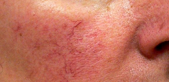 The longer rosacea is present the more likely spider veins are to start showing on the face.